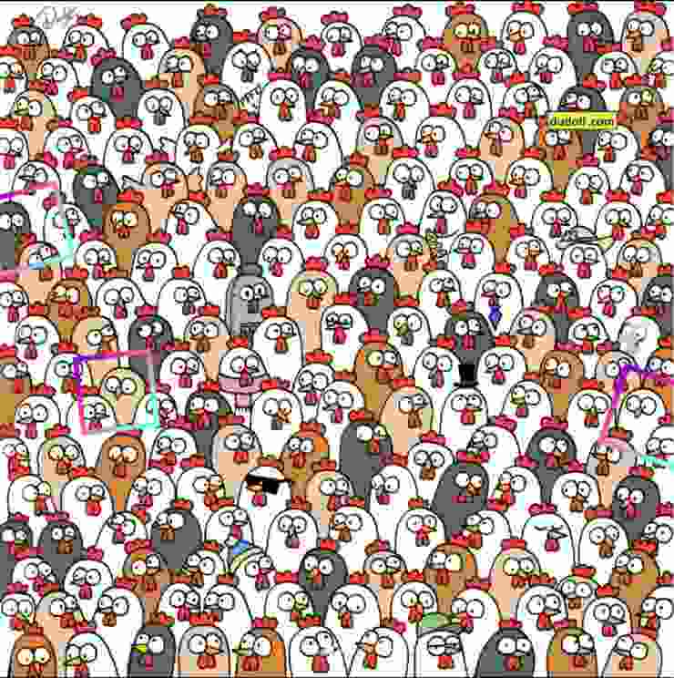 Senza ulteriori indugi andiamo a mostrarvi l’immagine completa nella quale dovrete localizzare i tre intrusi tra le galline.
