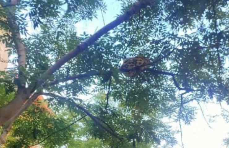 L’insolita scoperta è avvenuta tra le vie alberate nel distretto di Les Corts, in Spagna. Più precisamente in via Felipe de Paz. Lì i pompieri sono intervenuti – numerosi – con delle apposite gru per riuscire a raggiungere il ramo dell’albero su cui si intravedeva – totalmente arrotolato su se stesso – il gigantesco rettile. L’operazione non ha riportato alcun ferito, ma ha ugualmente destato un grande stupore per quella che si è rivelata, sul finale, la provenienza del rettile.