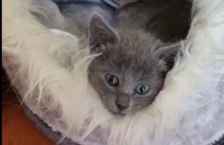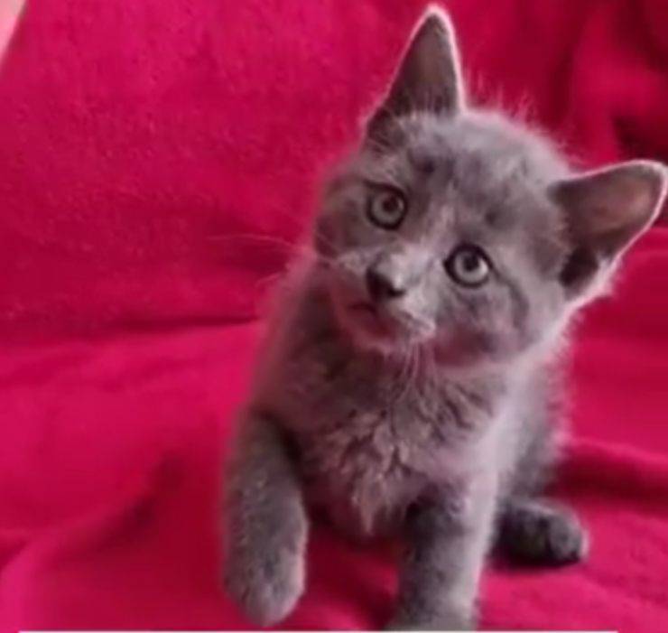 Miagolava disperato sotto alla pioggia battente, ridotto ormai quasi in fin di vita. In queste terribili condizioni un povero micetto dal manto grigio è stato trovato in un tardo pomeriggio da una donna. Il cucciolo di poche settimane, spaventato e tutto bagnato, se ne stava immobile e inerte in mezzo a una strada, con il rischio di venire investito da un’automobile in corsa. Sembrava che nessuno potesse accorgersi della sua presenza o potesse sentire i suoi deboli miagolii coperti dal rumore delle gocce di pioggia che inesorabilmente continuavano a cadergli sul musetto.