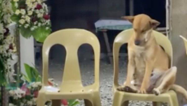 Non si smette di amare qualcuno soltanto perché quest’ultimo è lontano da noi. O almeno questa sembra essere la premessa di quanto accaduto a un cane durante il suo ultimo saluto a una persona che per lui è fino a quel momento un punto di riferimento. Nell’immagine in movimento si intravede un cagnolino che, seduto tra una sedia vuota e un altare con dei fiori bianchi e rosa, sembra mostrare – con un semplice gesto – il suo amore e la sua tristezza di risposta a quello che sta accadendo in quel momento accanto a lui.