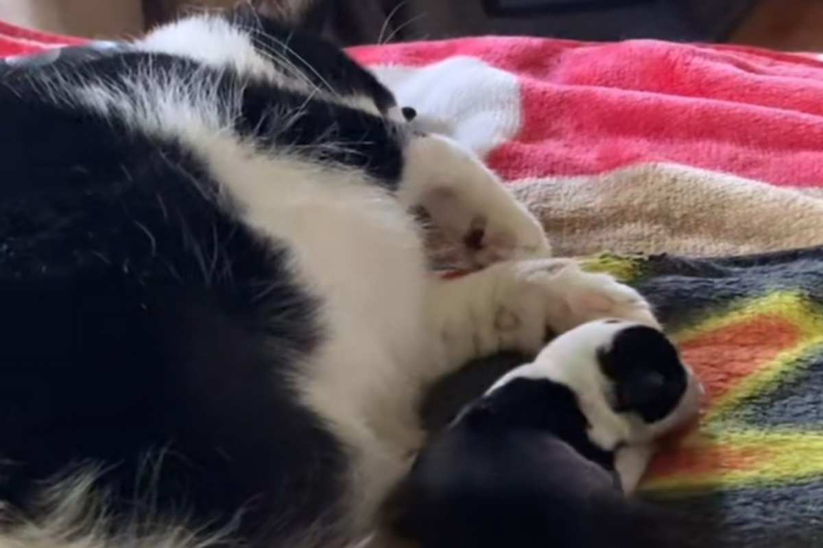 Mamma gatto prende in “prestito” un cucciolo non suo, una lezione di amore incondizionato