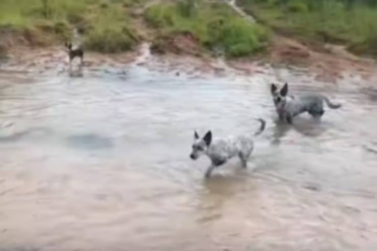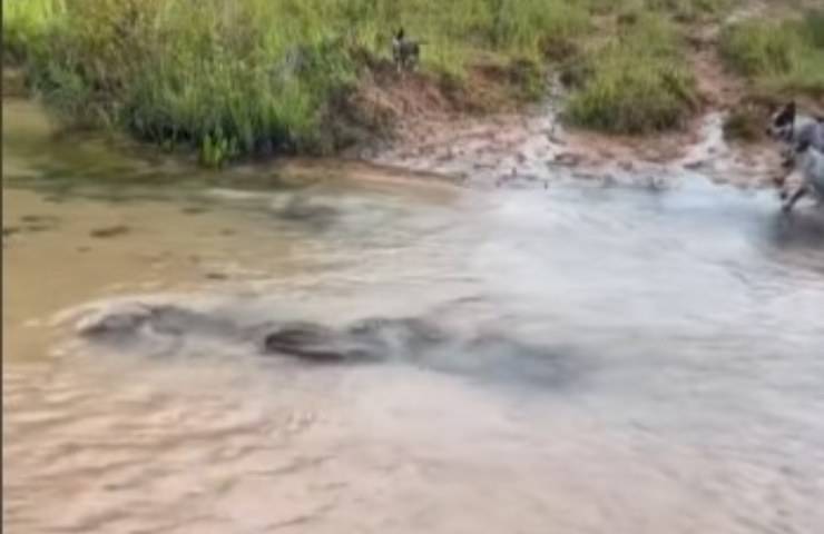 La natura è fatta di prede e predatori perciò quando i nostri amici a quattro zampe sono in pericolo si fa di tutto per aiutarli. Soprattutto per i cani, è difficile non si accorgano di un eventuale pericolo, ma quando questo silenziosamente si confonde con il rumore del torrente c’è poco da fare. Per fortuna, in questo caso, l’agricoltore avvista il pericolo e richiama i cani a sé prima che la situazione degeneri.