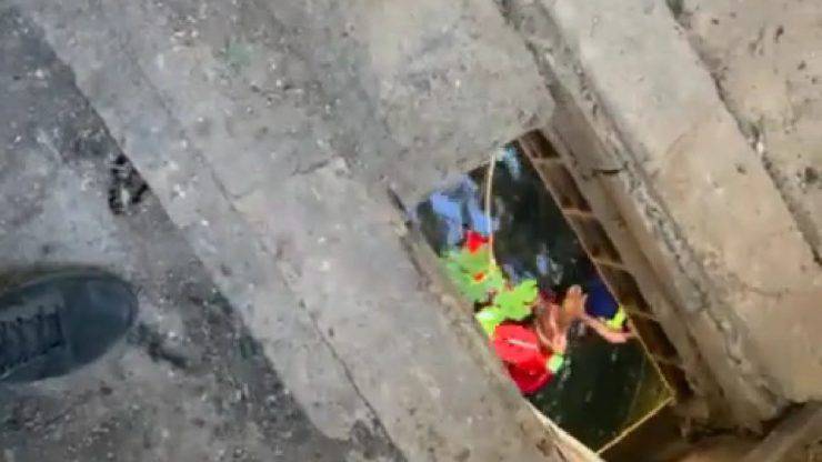 Il cane e l’uomo cadono nel pozzo e nell’acqua gelata – VIDEO