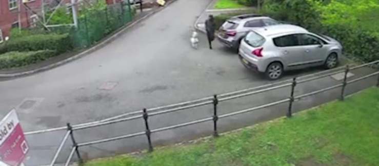 E scioccante la scena che riprende l’uomo che dopo aver fatto irruzione in casa di una coppia a King’s Heath, Birmingham ha rapito entrambi i cani di famiglia.