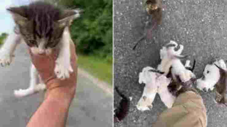 L’uomo non esita un istante a caricare in macchina tutta la cucciolata, sorprendentemente in salute per essere un gruppo di piccoli abbandonati. Robert, infatti, racconta successivamente di aver guidato probabilmente dietro la macchina colpevole di aver abbandonato i gattini, dato che ha intravisto la vettura in questione accostarsi alla strada.