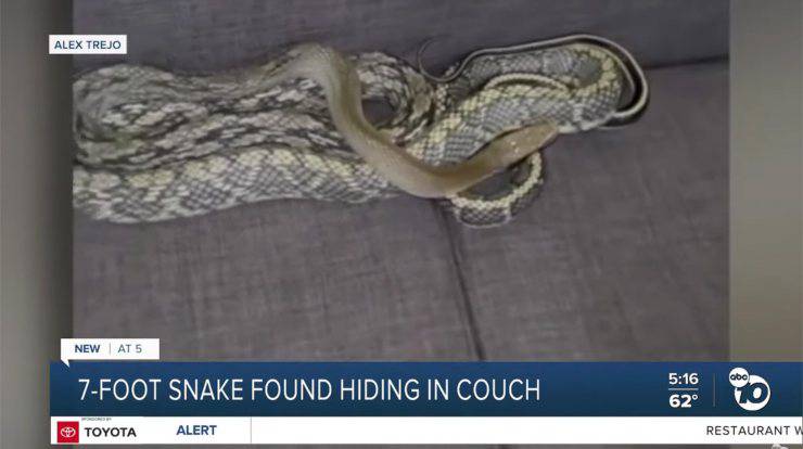 In California un uomo fa una curiosa scoperta nel suo divano: trova un bel serpente di sette metri! Ecco quello che è successo.