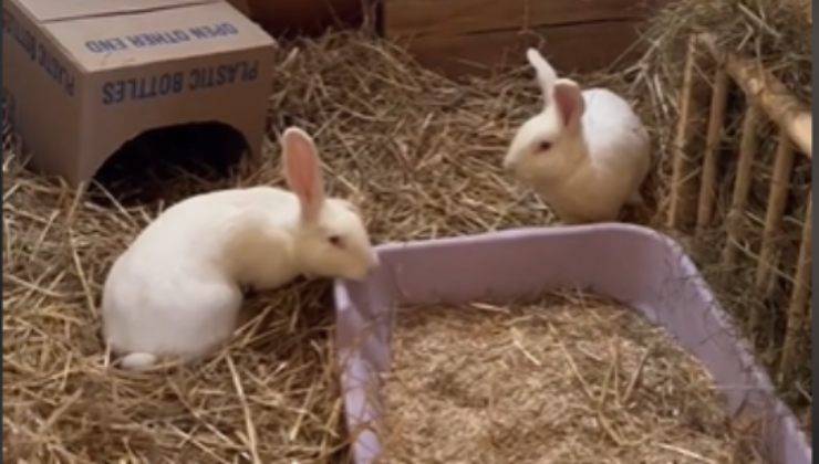I due conigli da laboratorio escono dalla gabbia per la prima volta nella loro vita: il video conquista il web