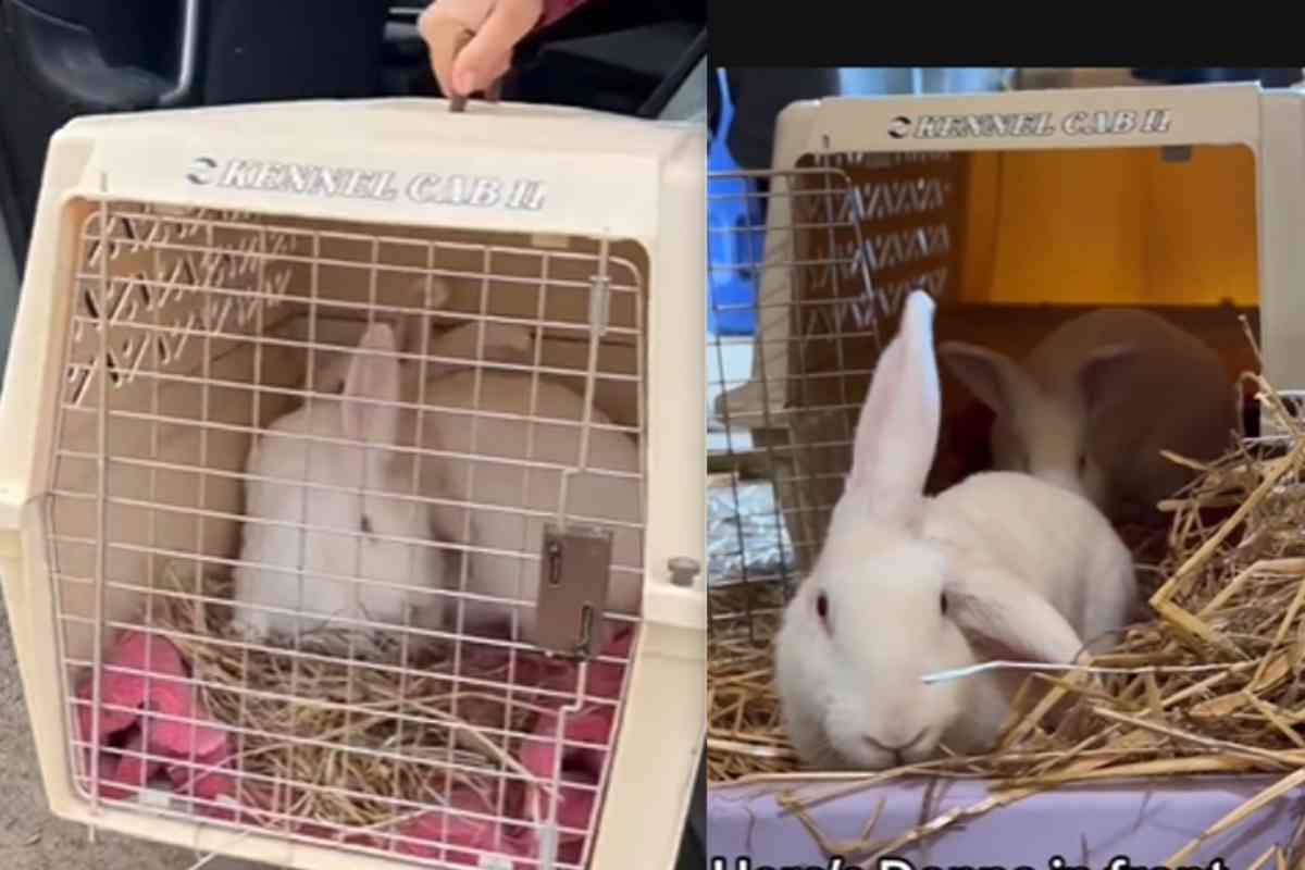 Dopo aver trascorso la vita come cavie da laboratorio, escono per la prima volta dalla loro gabbia: il video dei due conigli commuove gli utenti del web.