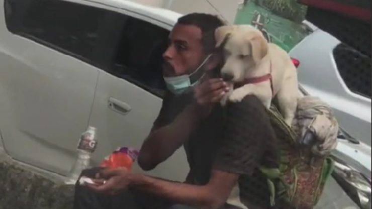 Uomo e il suo gesto d’amore: condivide il poco cibo con il suo cane – VIDEO