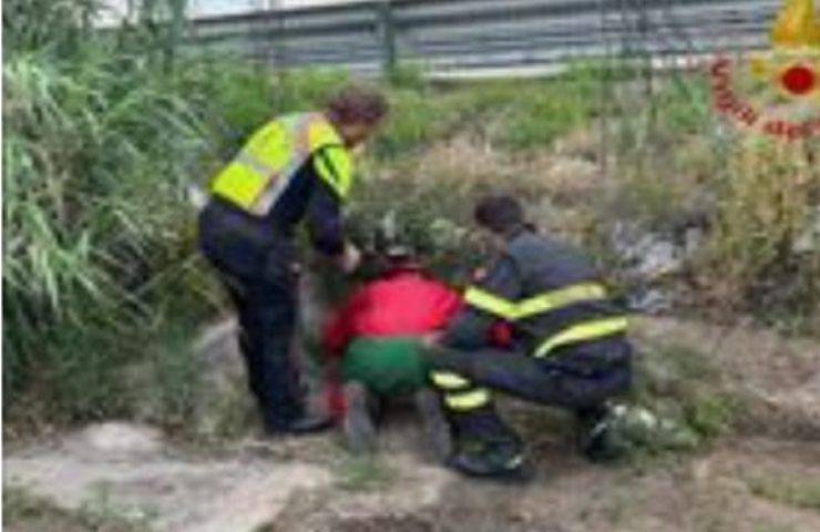 Vigili del fuoco salvano cuccioli in un canale in autostrada
