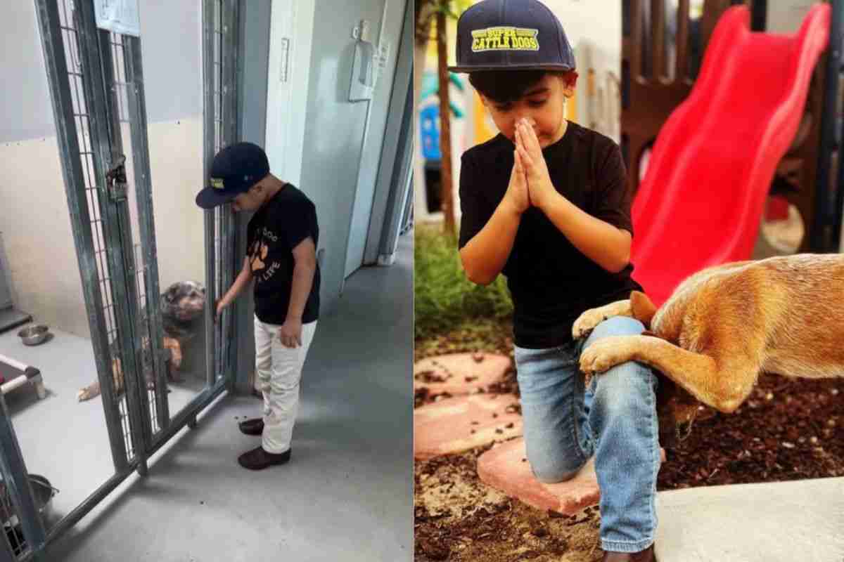 Bambino che prega in un rifugio per cani: cosa dice ai ‘futuri’ padroni