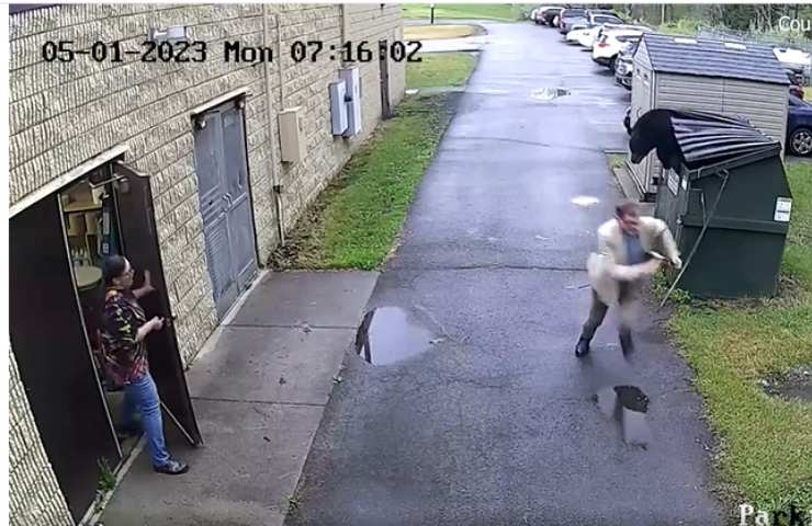 Il video mostra il momento in cui il preside James Marsh si dirige verso il cassonetto della spazzatura e lo apre. Non appena solleva il coperchio, la testa di un orso nero fa capolino dal secchione: l’animale gira il muso a destra e a sinistra e poi alla vista del preside esce dal cassonetto correndo via terrorizzato. Allo stesso modo reagisce il preside che corre a gambe levate nella direzione opposta. «Quando getti roba in un cassonetto sai che diverse cose finiscono lì dentro, ma non ti aspetti di certo che venga fuori qualcosa di così grande», ha poi scherzato il preside Marsh. Le riprese notturne delle telecamere di sorveglianza avevano immortalato anche il momento esatto in cui l’orso, durante la notte, era entrato nel cassonetto alla ricerca di qualcosa da mangiare, rimanendo poi intrappolato quando il coperchio si era chiuso sopra la sua testa.