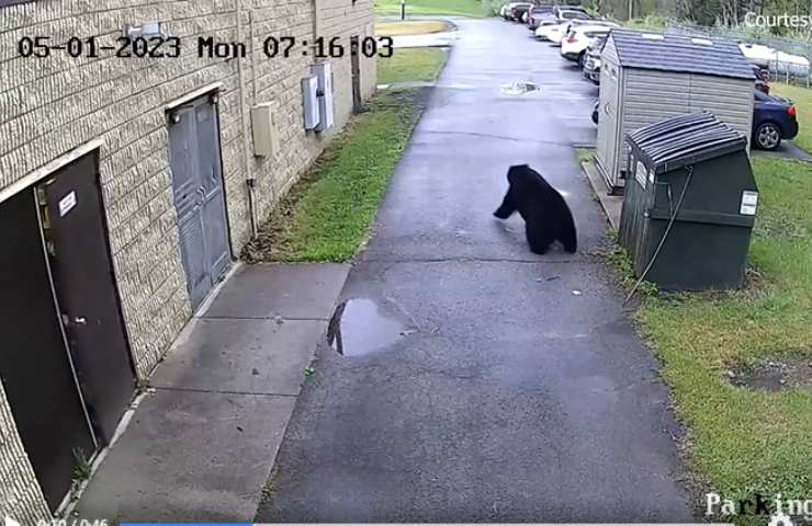 Spesso gli orsi si avvicinano ai centri abitati in cerca di cibo. Fino a poco tempo fa, ad esempio, in Abruzzo tra la neve di Roccaraso non era infrequente vedere spuntare dietro alle automobili e ai cassonetti della spazzatura il simpatico orsetto Marsicano di nome Juan Carrito. L’animale, molto socievole con i cani, è stato spesso avvistato mentre si aggirava vicino alle case e si avvicinava incuriosito ai cagnolini che dal canto loro non si mostravano per nulla preoccupati. L’orso ripreso dalle telecamere di sicurezza della scuola della Virginia è invece un orso nero americano o baribal (nome scientifico Ursus americanus), il plantigrado più comune in Nord America. Questa specie di orso è relativamente piccola e dal peso e dalle dimensioni molto inferiori rispetto alle altre specie di orso. Sono tra gli orsi più timorosi nei confronti degli umani: ogni volta che si trovano a stretto contatto con le persone preferiscono, esattamente come accade per l’orso del video, darsi velocemente alla fuga.