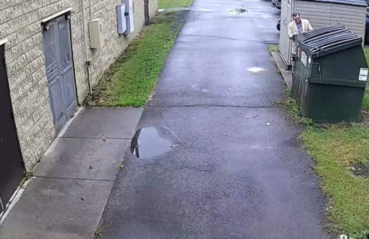 A sorpresa dal cassonetto della spazzatura esce un orso: l’incontro del preside con l’animale (VIDEO)