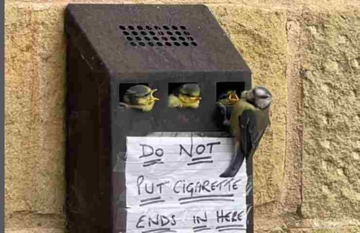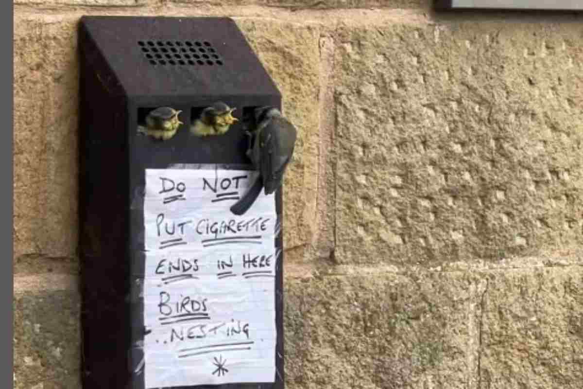 In quel caso di una cassetta della posta ad essere diventata la casa per 5 allegri e colorati uccellini, questa volta però a diventare un nido perfetto è stato niente meno che un posacenere da muro applicato su una parete. Anche in questo caso per fortuna qualcuno ha notato l’animale che trasportava sterpaglie dentro il posacenere ed ha deciso di applicare un cartello sopra di esso per far sì che le persone smettessero momentaneamente si utilizzarlo.