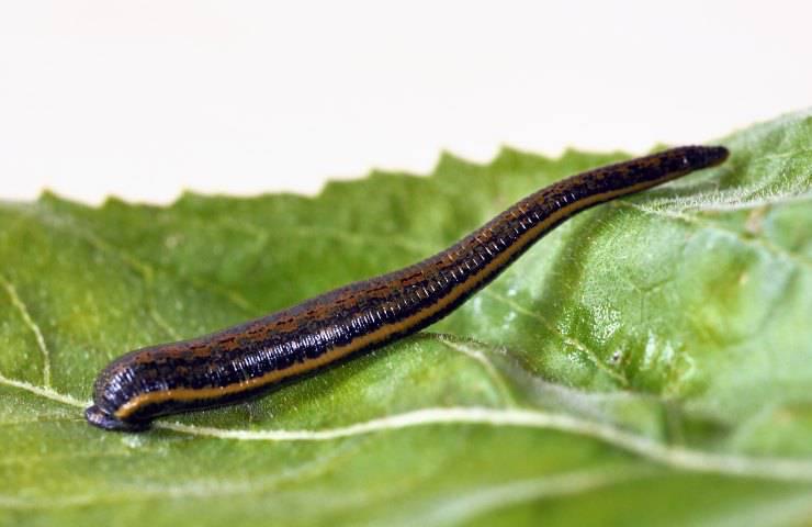 La sanguisuga medica ( Hirudo medicineis ) si attacca alla pelle delle sue vittime.