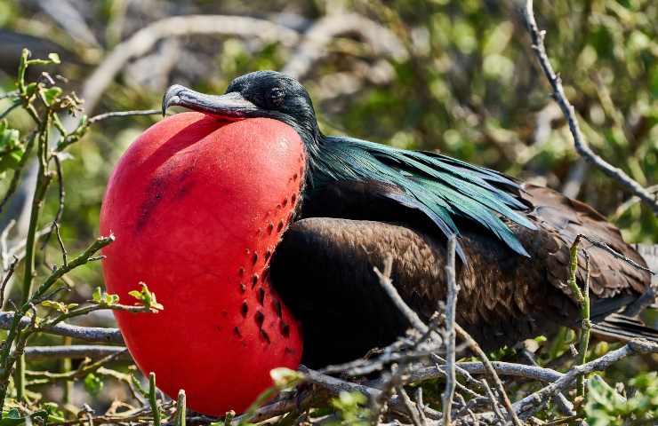 La caratteristica principale della Fregata magnifica è il particolare collo del maschio che durante la stagione dell’accoppiamento, si gonfia per richiamare l’attenzione delle femmine.