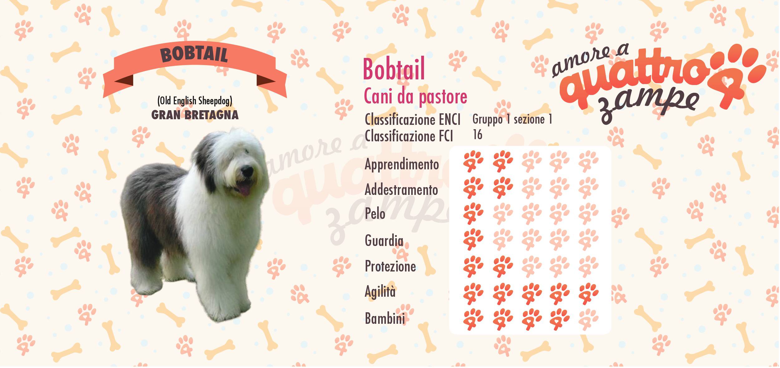 Il Bobtail (anche chiamato Old English Sheepdog) è una razza canina di origine britannica riconosciuta dalla FCI. E’ un cane dalle origini remote: probabilmente deriva dal pastore asiatico che ha dato vita al cane da pastore del Brie (Briard) in Francia, al cane da pastore bergamasco in Italia, al Komodor in Ungheria. Il Bobtail è stato selezionato per la prima volta al tempo della guerra dei cent’anni, e nella sua genealogia compare sicuramente il Briard.