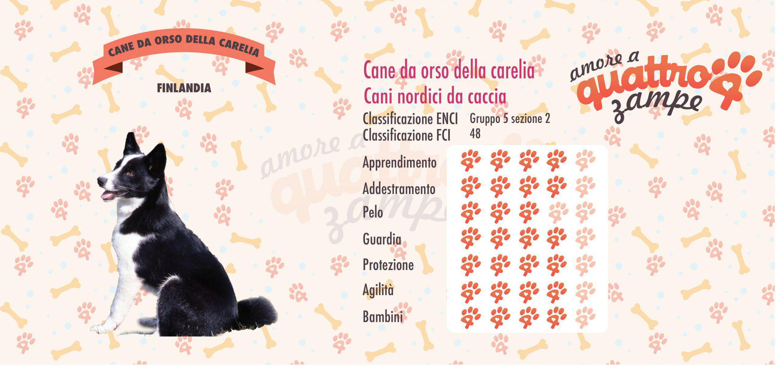Il Cane da orso della Carelia ha un carattere attivo e dinamico. E’ molto sicuro di sé, infatti risulta indipendente e ciò lo porta ad essere riservato. Sa essere anche premuroso e un gran giocherellone con i bambini. Non è aggressivo con gli uomini, ma ci va pesante con i suoi simili poichè ha un senso innato per la lotta. Non ama vivere insieme agli altri animali, in particolari i gatti, e non si adatta facilmente alla vita in appartamento. Adora gli spazi aperti ma non è abituato alle temperature caldissime, ecco perché dovrebbe vivere in campagna con l’aria fresca, oppure in delle ville con giardino così può fare lunghe passeggiate e stare all’aperto.