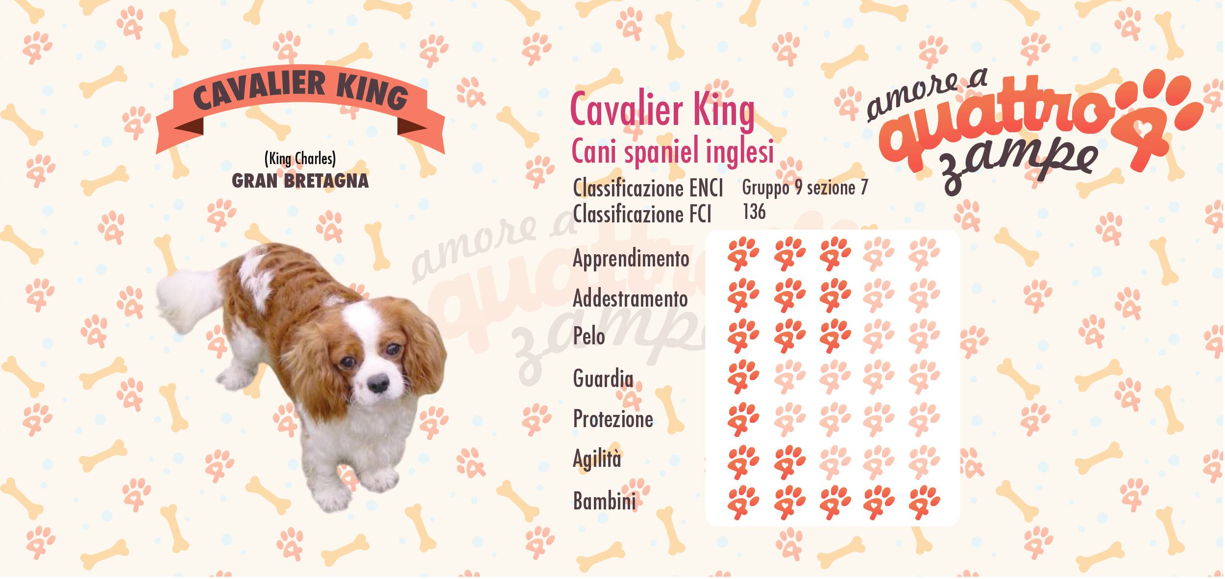 Una razza di cani di piccola taglia di origini inglesi sviluppata nel XX secolo, il Cavalier King Charles Spaniel deriva dal King Charles Spaniel, una razza risalente già al ‘700.
