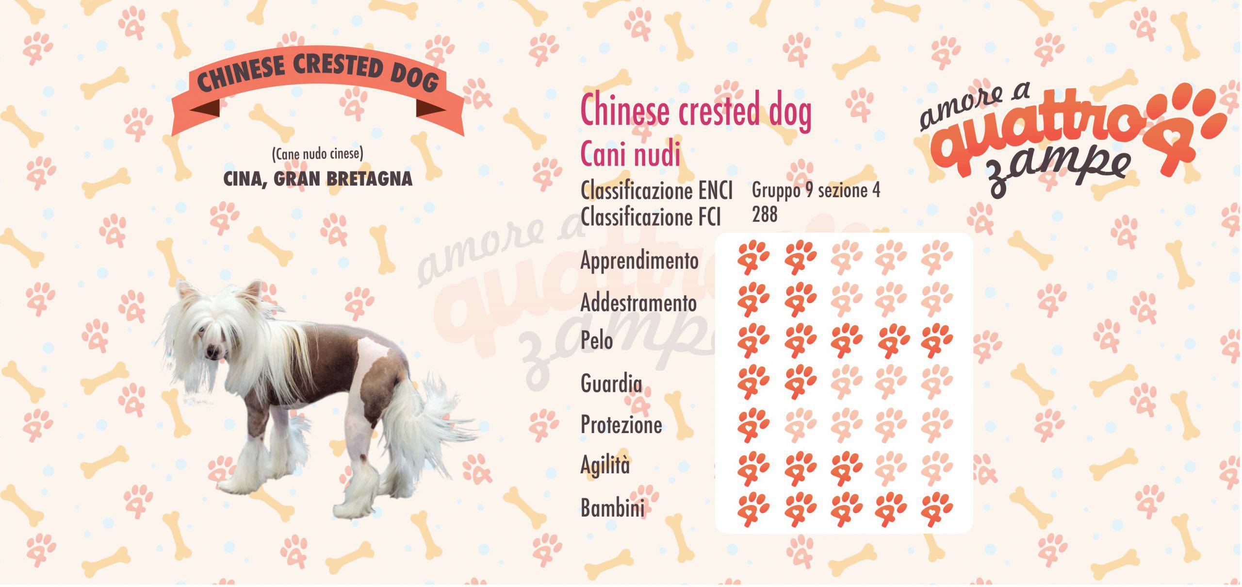 Non ci sono tanti esemplari con l’aspetto estetico del Chinese Crested Dog è originale. Richiede cure estetiche ma non è costoso. E’ un cane eccezionale, molto simpatico, amorevole e caloroso quasi con tutti. Adora vivere in città e al caldo nel suo appartamento tra i suoi familiari proprio come una vita di puro relax. Anche se piccolo è ben proporzionato ed agile, con ossa sottili ma dal passo elegante, infatti, spesso viene usato anche per le sfilate. E’ perfetto per i bambini, vista la sua vivacità, il suo divertirsi continuamente ed essere molto attivo senza fermarsi un secondo. Ha sempre il buon umore per tenere attiva la sua famiglia.