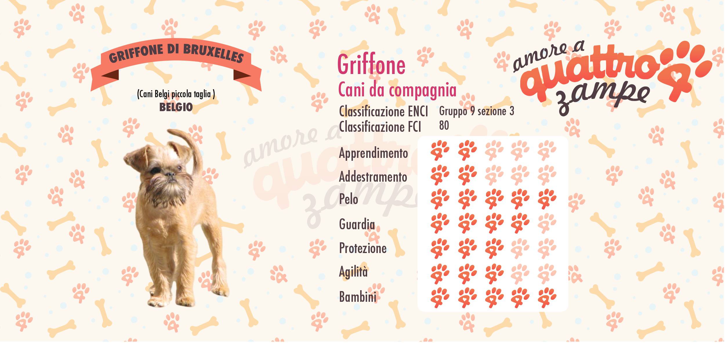 Il Griffone Belga, il Griffone di Bruxelles e il Piccolo Brabantino, discendono dallo “Smousje”, un piccolo cane a pelo duro originario di Bruxelles. Sono stati raffigurati su tela da maestri del XVII secolo. Attraverso diversi incroci nel XIX secolo con il King Charles Spaniel e il Carlino fu selezionata la tipologia della razza attuale. Nel 1883 i primi Griffoni di Bruxelles sono entrati a far parte del “Libro delle Origini St. Hubert” (L.O.S.H.). Fu addestrato per stare a guardia delle carrozze e nelle scuderie a respingere i roditori. Grazie alla regina del Belgio Marie Henriette, il Griffone divenne popolare.