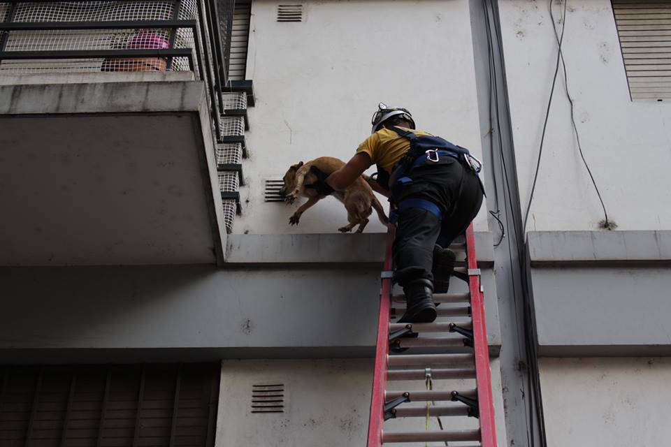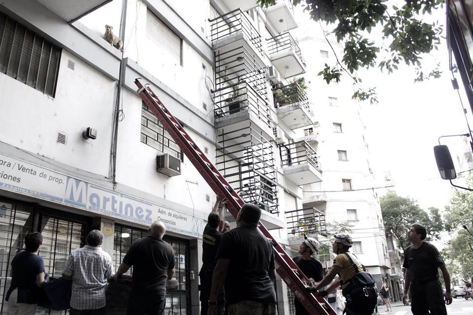 “Un cane gioca all’equilibrista, tutti insieme ci siamo messi a lavorare per attutire un’eventuale caduta”, ha commentato Francisco Morello che ha pubblicato il video sul suo profilo facebook, spiegando che la tensione ha iniziato a scendere solo quando sono arrivati i vigili del fuoco.