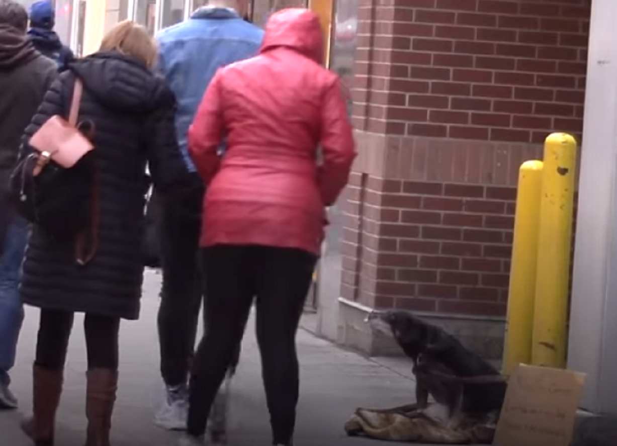 Nell’arco di diverse ore, nessuno si è soffermato a controllare il povero animale. Nel video si vedono decine di persone che transitano davanti al cane che viene totalmente ignorato. Alcune persone hanno abbassato la testa per leggere il cartello, ma nessuno ha dimostrato di prendere a cuore il destino di quell’animale. Diversi passanti dopo aver letto il cartello molte persone di fronte alla realtà hanno preferito restare indifferenti. Una donna si è soffermata ad accarezzare l’animale poi, come se niente fosse, dopo aver letto il messaggio, ha proseguito il suo percorso, dimenticandosi di lui.