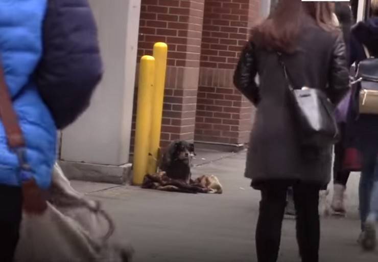 Ad un certo punto, tutto cambia. Ad accorgersi del cane, un uomo senzatetto. Dopo essere passato davanti al piccolo meticcio, il senzatetto, torna indietro: per lui era impossibile restare indifferenti e ignorare la richiesta di aiuto. L’uomo torna sui suoi passi e si avvicina al cane, si china su di lui e lo accarezza per rassicurarlo. Dopodiché inizia a parlargli: “Hai un nome? Hai fame? Devi avere molta fame. Ho trovato del cibo, ecco cosa do al mio cane”. A quel punto, il senzatetto tira fuori un po’ di cibo dalla sua tasca e un peluche per tranquillizzarlo.