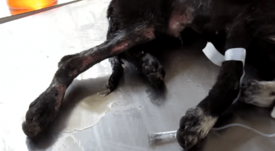 Durante il percorso, il cucciolo non ha smesso di lamentarsi. Le immagini e i suoni del filmato raccontano l’orrore e il dolore di quella piccola creatura. Al centro di Animal Aid, il cane è stato immediatamente sedato. I veterinari hanno ricucito le diverse lacerazioni sugli arti del cane e trattato le ferite con gli antibiotici.
