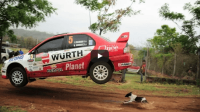 Il fatto è accaduto durante un rally a Santa Cruz in Bolivia, lo scorso 28 agosto, dove, un cane meticcio di taglia piccola si trovava per caso sulla pista delle auto. Ad un certo punto spunta a tutta velocità un’auto con al volante il pilota uruguaiano Fernando Zuasnabar che è riuscito miracolosamente ad evitare la tragedia: l’auto passando sopra ad un dosso è saltata in aria, volando sopra all’animale. Il cane si rende quasi conto di quello che è successo e impaurito inizia a scappare dopo il passaggio dell’auto, mentre un addetto della sicurezza gli corre appresso, molto probabilmente per evitare che l’animale torni in pista.