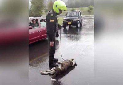 Accanto a lui c’è il tutore dell’ordine che invece non fa una piega e non sembra affatto mostrare alcun segno di rimorso per aver commesso una azione talmente orribile e riprovevole. Nessun commento è giunto dalle autorità della non precisata città della Colombia dove è avvenuta la cosa. Si apprende però che il cane trascinato non ha riportato conseguenze tali da mettere a rischio la sua vita: fortunatamente infatti l’animale è stato salvato e condotto dal più vicino veterinario, che è stato in grado di curare le ferite riportate in questa assurda circostanza.