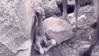 Fortunatamente, per ironia della sorte, nei paraggi è arrivato un cacciatore che dopo essersi installato con i suoi fucili, attraverso il mirino della sua arma si è accorto della scena. L’uomo si è subito attivato per aiutare il povero cucciolo. Nel filmato condiviso su youtube, lo scorso 5 febbraio, si vede chiaramente gli sforzi intrapresi dal cacciatore per estrarre il cucciolo che aveva le sue zampe incastrare tra due massi. Evidentemente, il piccolo dromedario, inavvertitamente, potrebbe essere scivolato nella fessura rimanendo intrappolato e agitandosi ha solo complicato la situazione.