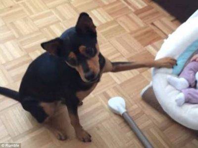 In un filmato commuovente si vede la piccola Sheeta che, ascoltando il comando del padrone, appoggia la zampa sulla culla e inizia a muoverla, spingendola delicatamente. Il cane e la bambina che sembra gradire il movimento si scambiano uno sguardo dolcissimo. Poco dopo Sheeta si concentra di nuovo sul suo padrone in attesa di una ricompensa.