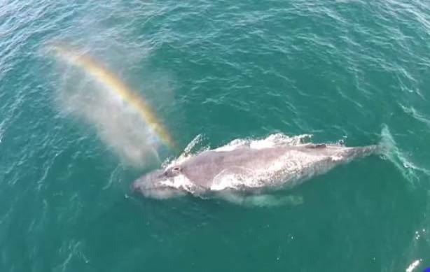 Il video condiviso su youtube lo scorso 6 luglio, è stato girato da Mark Girardeau, un fotografo naturalista che a bordo di una barca a Newport Beach, in California, stava seguendo con il capitano Royce Hutain un branco di balene bianche. Grazie ad un drone, Girardeau, lo scorso maggio, ha catturato una serie di immagini straordinarie nelle quali non solo si può ammirare il movimento lento sotto l’acqua delle balene, tra cui possiamo notare una madre con il cucciolo, ma anche come una balena che tornando in superficie, con il suo getto crea un arcobaleno. Un fenomeno che è stato visibile grazie al tipo di angolazione della telecamera.
