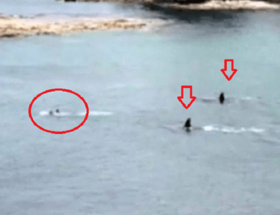 Una situazione idilliaca ripresa da due turisti, forse i genitori dei bambini, che li stavano osservando dalla scogilera. Ad un certo punto, questa atmosfera è stata interrotta dalla comparsa di due grosse orche a pochi metri di distanza dai bambini. Dalle immagini si possono notare due grosse pinne che si muovano nella baia e che tornando verso il largo, si dirigono minacciosamente verso i ragazzini che stavano nuotando lontano dalla riva.