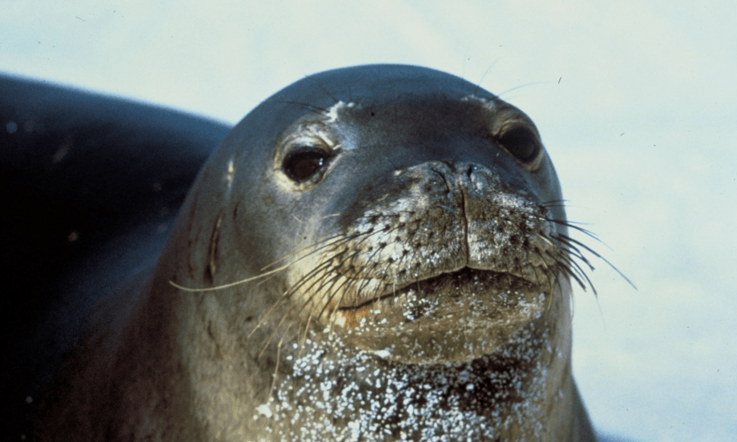 Dietro al pescatore si può notare l’esemplare ad una certa distanza che sembra intuire quanto l’uomo sta cercando di fare per lui. Infatti, mano a mano che il pescatore taglia il ghiaccio, la foca si avvicina fino a scoprire il buco nel ghiaccio e tuffarsi nell’acqua.