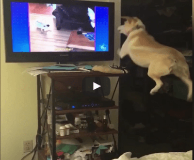 Una ricerca condotta nel 2016 “su cosa vedono i cani quando guardano la tv“, ricordando che i cani vedono attraverso due spettri di luce, il blu e il giallo, mettendo in evidenza che “il passaggio ad una tecnologia ad alta definizione ha consentito una migliore percezione visiva rispetto ai vecchi televisori”. In generale, hanno sottolineato i ricercatori, i cani prediligono immagini in movimento e sarebbero attratti dai suoni emessi dal televisore o altri dispositivi e dalle immagini che rappresentano altri cani. Questo video, rispecchia perfettamente quanto hanno affermato gli studiosi e ci regala una piccola chicca che resterà senz’altro negli archivi e che sicuramente entrerà a far parte delle simpaticissime “compilation” annuali sulle gaffe o sui cani più divertenti del web.