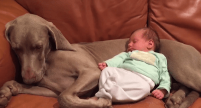 La tenerezza di una relazione e di una complicità intima sono presenti in questo video di pochi minuti. Un bellissimo bracco di Weimer è sdraiato sul divano con un neonato che riposa sul suo fianco. Pochi secondi nei quali vediamo i delicati scambi affettivi che si creano attraverso canali empatici e puramente sensoriali.