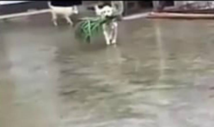 Il cane, un adorabile pelosetto bianco, dopo aver recuperato “lo snack” da un magazzino, lo posiziona nella mangiatoia, scodinzolando in segno di felicità per gesto compiuto. La gentilezza del quattro zampe è stata ripagata dalla gioia del bufalo, l’insospettabile amico.