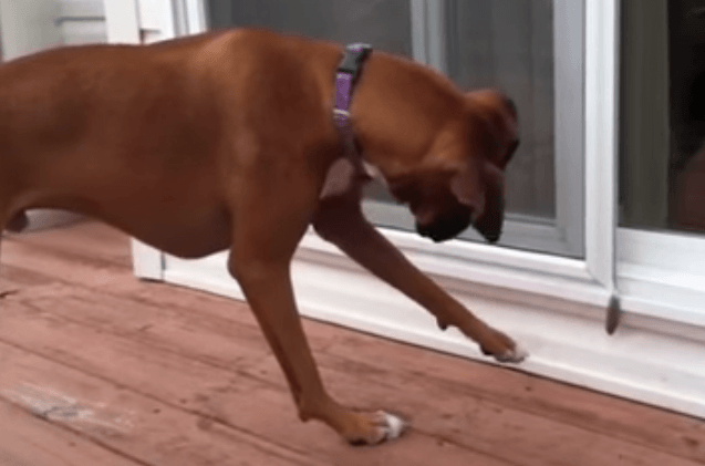 In questo video, un simpatico boxer è alle prese con un oggetto “terribile”, individuato al bordo della porta finestra della casa. Il cane si guarda bene dall’avvicinarsi troppo ma, spinto dalla curiosità, cerca di scoprire quell’oggetto non identificato che “osa” disturbare la sua quiete quotidiana.