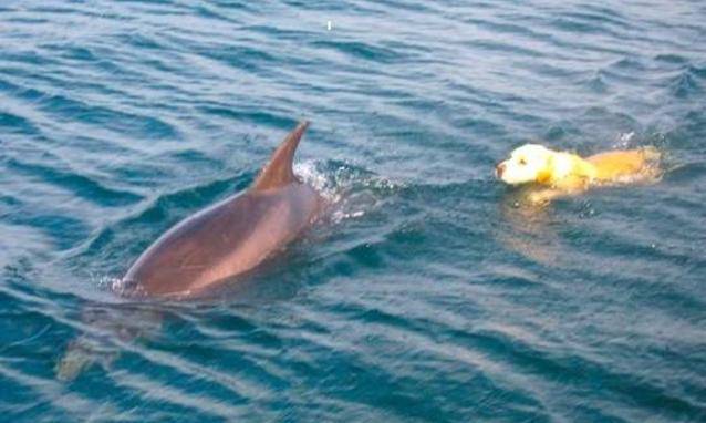 Ci sono numerosi video pubblicati in rete che testimoniano dell’amicizia che si può creare tra un cane e i delfini, come la storia di un cane salvato da un delfino da un attacco di uno squalo oppure Kira, che sta in un centro di addestramento per delfini nel sud del Mozambico e che si diverte ad inseguire i cetacei nell’Oceano Indiano.