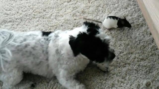 Una bellissima testimonianza sull’amicizia che si può creare tra specie animali. Questo video condiviso su youtube lo scorso 16 ottobre, mostra un delizioso momento intimo tra un cane di piccola taglia, di razza shih tzu e un simpatico ratto. I due compagni di gioco hanno il manto molto simile, bianco e nero e queste due adorabili palle di pelo se la danno alla pazza gioia sul tappetto del salone, scambiato per un vero e proprio parco giochi!