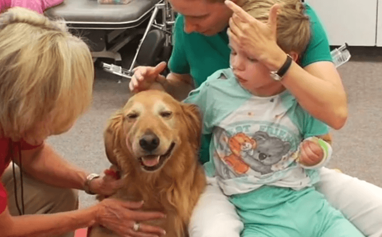 Si tratta di un bambino di sei anni, di nome Caleb rimasto vittima di un incidente stradale per cui ha riportato delle lesioni cerebrali irreversibili che hanno danneggiato l’apparato motorio. Durante la sua permanenza in ospedale, il piccolo Caleb aveva perso qualsiasi stimolo, diventando insensibile al mondo esterno e alle persone che lo circondavano ed era privo di energia. Lo staff medico specializzato ha pertanto introdotto Caleb in un percorso di Pet therapy, affiancando al bambino un cane di razza Golden Retriever, di nome Colonnel.