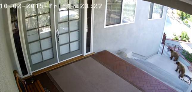 Impossibile resistere al richiamo di questo straordinario piccolo bulldog francese che non si fa intimorire dalla presenza di due cuccioli di orso. Le telecamere di un’abitazione a Monrovia, in California, hanno ripreso lo scorso 2 ottobre l’intrusione di due giovani esemplari di orso. Ad un tratto, nel filmatosi nota la comparsa del cane di casa che, senza esitare, si precipita di corsa per le scale dell’ingresso e spaventa i due cuccioli. Un coraggio da leoni considerando che un bulldog di appena 9 chili non ha dubitato un istante a difendere la propria casa, scagliandosi contro i due orsi che sono fuggiti.