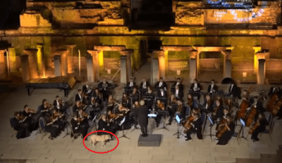 Immagini straordinarie che stanno facendo il giro del mondo. Quelle di un cane che durante un concerto dell’orchestra sinfonica Vienna Chamber, nel suggestivo scenario della città antica di Efeso, in Turchia.
