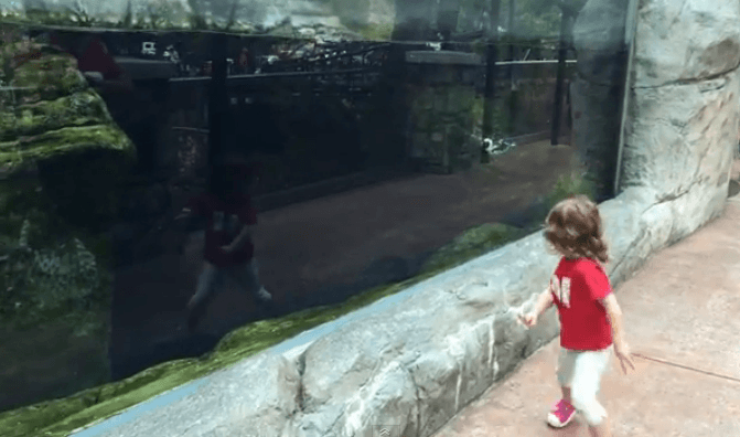 Attraverso il vetro la bambina e Hala si sono divertite per qualche minuto a rincorrersi a vicenda. Il pinguino che è un animale socievole ama molto giocare e di certo, in quel noioso acquario dove tutti i giorni sono uguali, non a perso l’occasione di svagarsi un pochino con la piccola di Brynn.