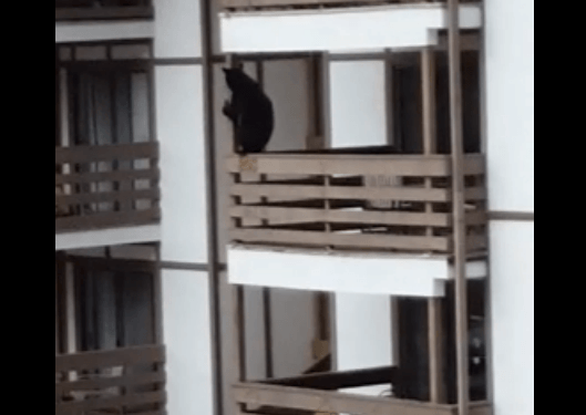 Nel filmato si vede un giovane orso che scende dal terso piano di una palazzina, passando da un balcone all’altro. L’orso mostra una straordinaria abilità nello scavalcare le balaustre dei balconi per scendere mano a mano dal palazzo. L’animale non sembra per nulla spaventato né tantomeno disorientato, come se per lui, fosse un esercizio di routine.