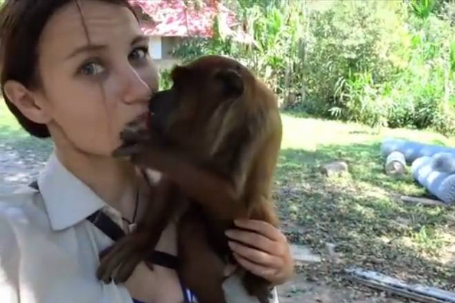 Un video girato presso La Senda Verde, un santuario e rifugio in Bolivia, dove gli animali selvatici ospitati nella struttura sono liberi di circolare senza essere costretti dietro le sbarre di una gabbie. In questo modo i volontari del centro hanno modo di creare un legame molto forte con le piccole creature del rifugio. Una giovane ragazza di nome Goska ha stretto così tanta amicizia con una scimmia tanto che, non appena la volontaria accenna a dare un bacetto al sua amica pelosa, quest’ultima, sembra apprezzare e profitta dell’occasione!