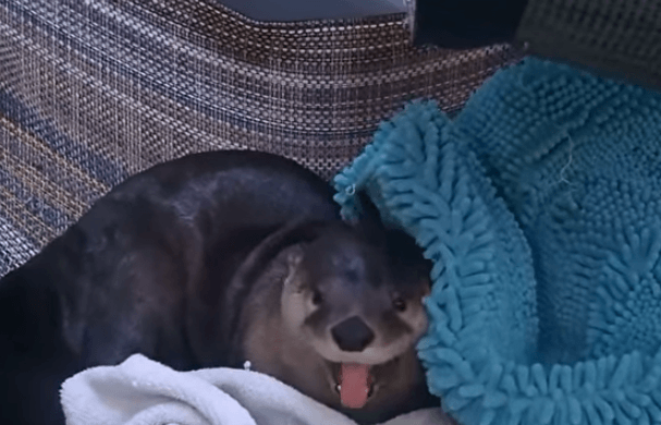Una piccola lontra del Nord America che conquista il cuore! L’esemplare è un cucciolo chiamato Ryer che è stato salvato e ospitato nell’Acquario della Baia di San Francisco. Il video ritrae il momento in cui, il biologo marino Dani Estes tenta di svegliare la lontra. Ryer sembra essere in uno stato catatonico, nascosto sotto ad una copertina. La biologa chiama Ryer che, evidentemente, finge di non sentire il suo nome. Ad un tratto, la lontra alza la sua testa, emette un piccolo suono e torna nuovamente a dormire sotto la copertina! Insomma, il messaggio è chiaro: “No, no, non voglio alzarmi”.